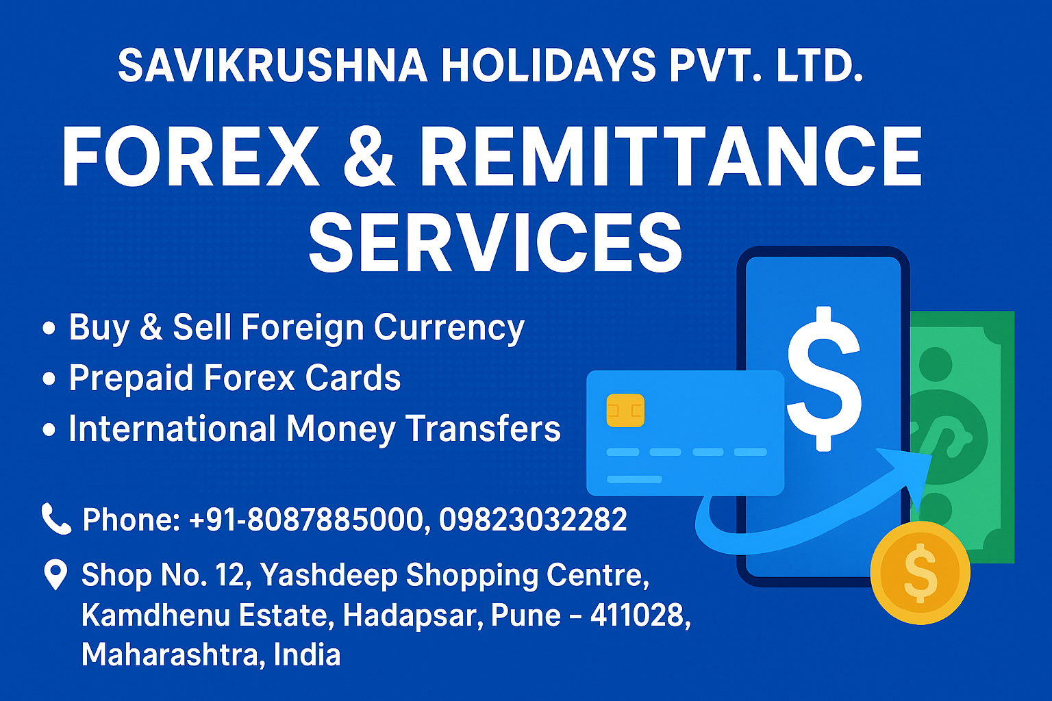 Traveling abroad or sending money overseas? Savikrushna Holidays, Pune makes it simple, secure, and reliable with professional foreign exchange and international remittance solutions.